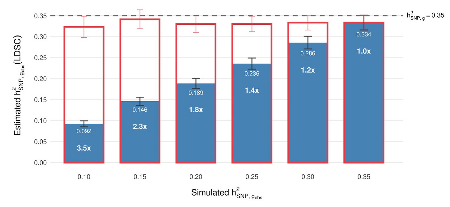 Our reliability framework suggests an underappreciated explanation for at least part of the gap. Twin studies typically involve careful, extended cognitive assessments administered on the same day, at the same age, and often by the same rater, meaning they suffer substantially less from measurement error to begin with. Furthermore, aspects of that measurement error might actually be heritable themselves. Biobank studies, on the other hand, use brief tests administered to hundreds of thousands of people. If the biobank test has a reliability of ~0.6, then the observed SNP-heritability is artificially constrained. In other words, a lot of what’s “missing” is simply obscured by noise in the phenotype measurement.
